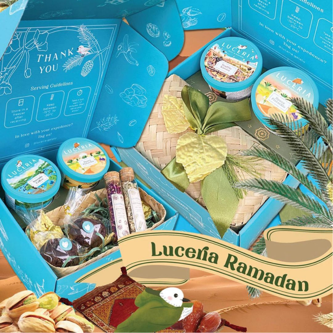 This is our Exclusive Idul-Fitri LIMITED EDITION HAMPER. This magical hamper consists of the following wonders:- 2 pints of Luceria (Assorted dark chocolate chip cookies & Exclusive Rosella Tea Leaves), Lemongrass Tea Leaves, Seasonal, personalized greeting card &, Luceria Idul Fitri box. Available for purchase in limited time.
